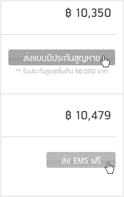สามารถเลือกการจัดส่งสินค้าได้ 2 แบบ คือ - จัดส่ง EMS ฟรี ไม่คิดค่าบริการ - จัดส่ง EMS แบบมีประกันการสูญหาย (มูลค่าสูงสุดไม่เกิน 50,000)