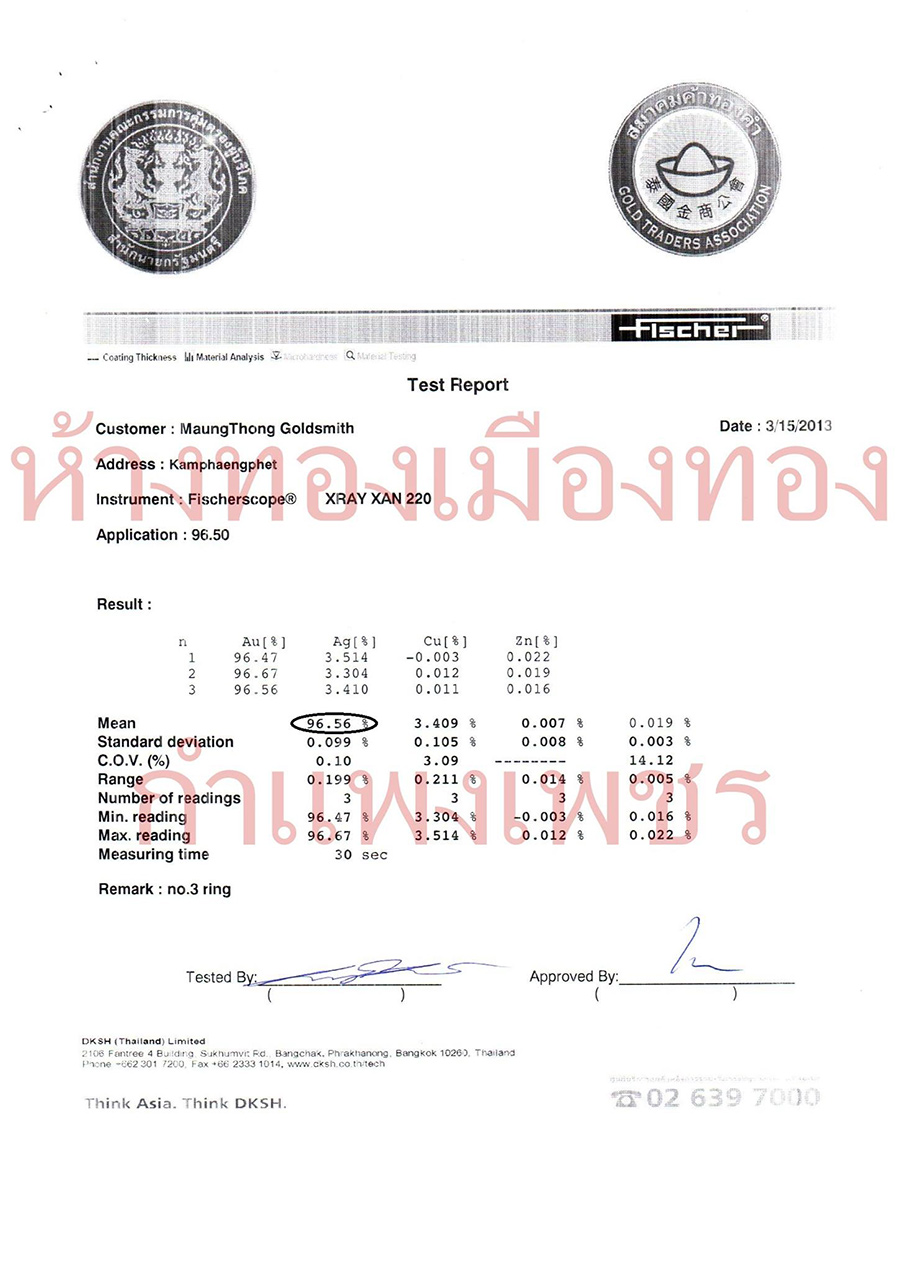 โดยสมาคมค้าทองคำและสคบ. เมื่อ15/3/2556 ผลการตรวจ "ทองเต็ม%ทุกชิ้น"
